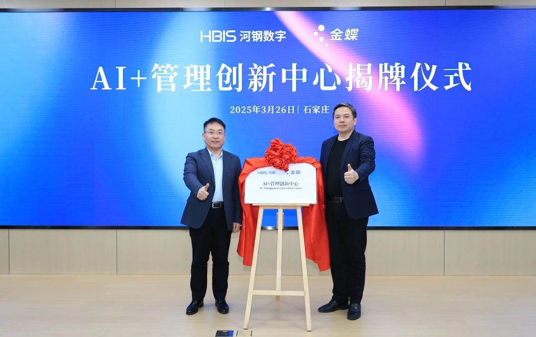 近日,河钢数字与金蝶共建的“AI+管理创新中心”在河钢数字威赛博工业互联网产业园揭牌。双方将在AI技术与管理创新融合领域展开全方位探索,共同构建“AI+管理”新范式,实现从生产要素到管理要素的全面数字化模式。